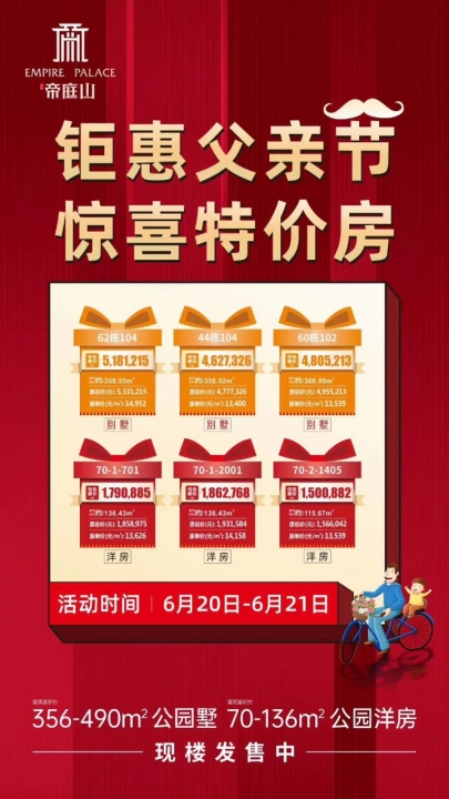 【宏】钜惠父亲节,惊喜特价房【远】墅质大社区【帝】356-490㎡公园墅【庭...