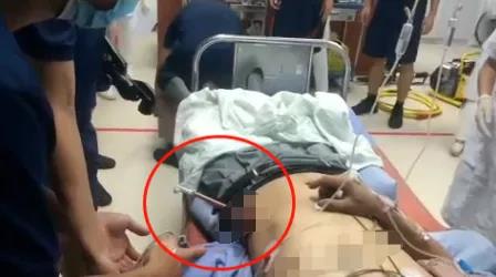 危急!东莞一工人操作机器时,不慎被木板横穿腹部